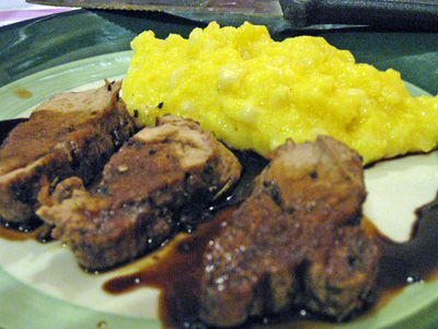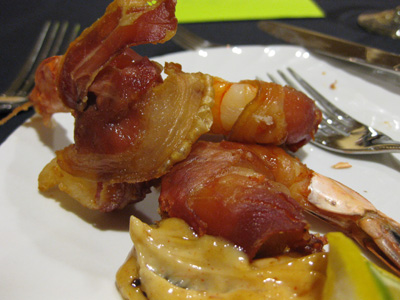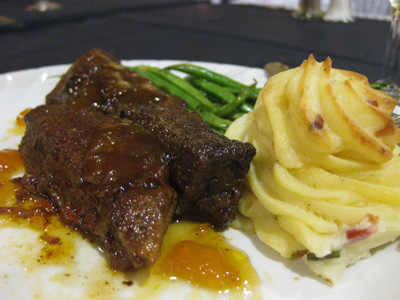 I wouldn’t call the fare at the hotel gourmet per se, but they put out a decent prosciutto wrapped shrimp appetizer followed by braised short ribs with whipped potatoes and green beans.