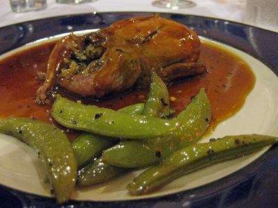 I wouldn’t call the fare at the hotel gourmet per se, but they put out a decent prosciutto wrapped shrimp appetizer followed by braised short ribs with whipped potatoes and green beans.
