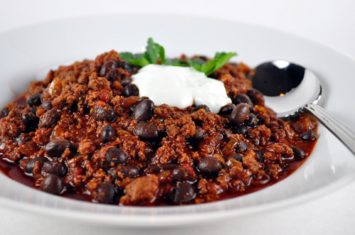 Now, here’s the secret that really makes this chili. When we tasted the chili during the competition, we first tasted it solo, without the sour cream, and were unimpressed. But when we topped it with the lime crema, well, we were hooked. Simply mix together sour cream with lime zest and juice and serve the chili with that dolloped on top.