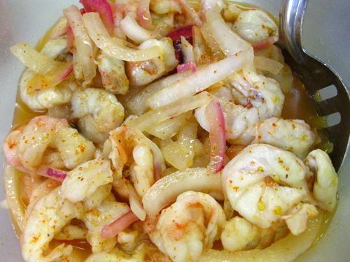 The point of the potluck is for the participants in the program to bring a favorite dish from home that they’ve attempted to recreate as a healthier recipe based on what they’ve learned in class. Some of them did really well with the assignment, and the dishes included lentils (simmer lentils with some minced onion in chicken stock, drain, and mix with some pico de gallo and mustard), a cactus salsa (boil cleaned and trimmed cactus with some garlic, drain and discard garlic, dice cactus and mix with some pico de gallo and lime juice), a white bean and sausage soup (diced vegetables simmered in chicken broth with white beans and turkey sausage), and a sort of shrimp ceviche (cooked shrimp and thinly sliced red onion marinated in lime juice and hot sauce). They made me proud!