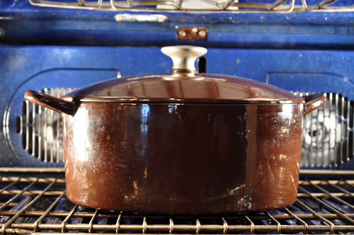 Nothing says cooking in season in cold regions like slow cooking something in the oven. I dread turning on the oven in the summer for fear of overheating an already hot house, but in the winter, I crave the extra warmth, and the scented kitchen all afternoon is just a bonus.