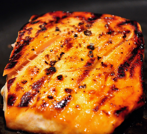 To make this gorgeous and succulent piece of fish for dinner, just brush a very small amount of agave nectar onto each side of the filet. I used about 1 teaspoon on each side, and used a pastry brush to spread it out (you could use your finger if you don’t have a pastry brush handy). Then sprinkle each side with salt and pepper and cook in a nonstick grill pan over medium heat until grill marks appear, about 3 minutes per side. Salmon retains its moisture better if cooked medium, meaning the center is still slightly darker, but if you prefer your fish cooked through, just cook it a couple of extra minutes, making sure the pan isn’t on too high of heat as it will burn with the agave coating.This fish goes perfectly with the Grapefruit and Fennel Salad with Avocado I posted a couple of days ago – just spoon a generous amount of the salad over the fish. The sweetness of the agave contrasts wonderfully with the tartness of the grapefruit.