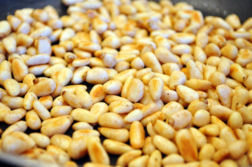 …along with toasted pine nuts. This is batch number two for today – I always turn away and burn the first batch!