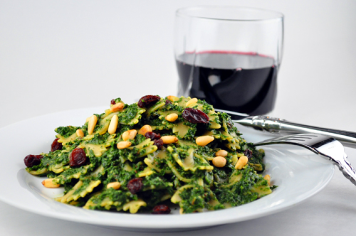 Oh man, pine nuts and pesto go together so well. I can think of a few nice wines to go with this dish in the summer. I would be tempted to add chicken though as well as I love meat!