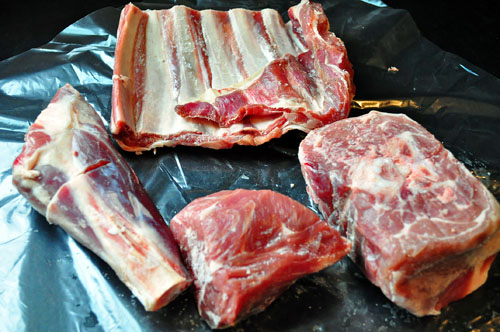 2 1/2 pounds lamb, bone in (shoulder, neck, chops, ribs)