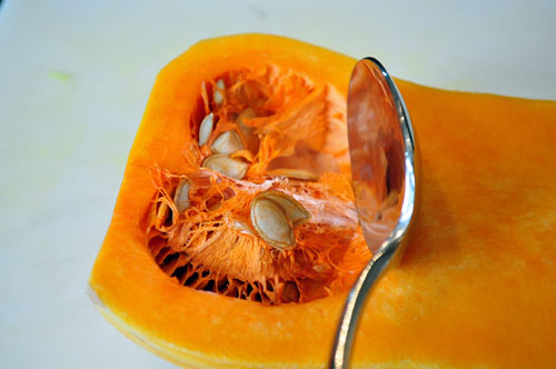 Fiinally, use a metal spoon to scoop out and discard the seeds…